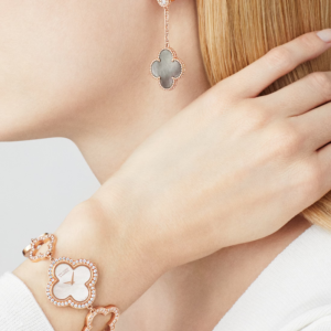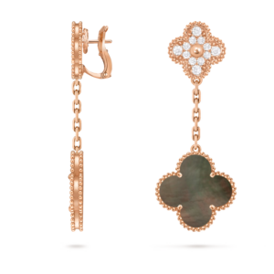 A graceful interpretation of luck and elegance, the Magic Alhambra Earrings, 2 Motifs bring the Maison’s iconic four-leaf clover to life through a poetic play of proportions. Featuring one larger motif paired with a smaller counterpart, the design creates a harmonious balance and a soft, fluid movement that illuminates the face with every gesture.