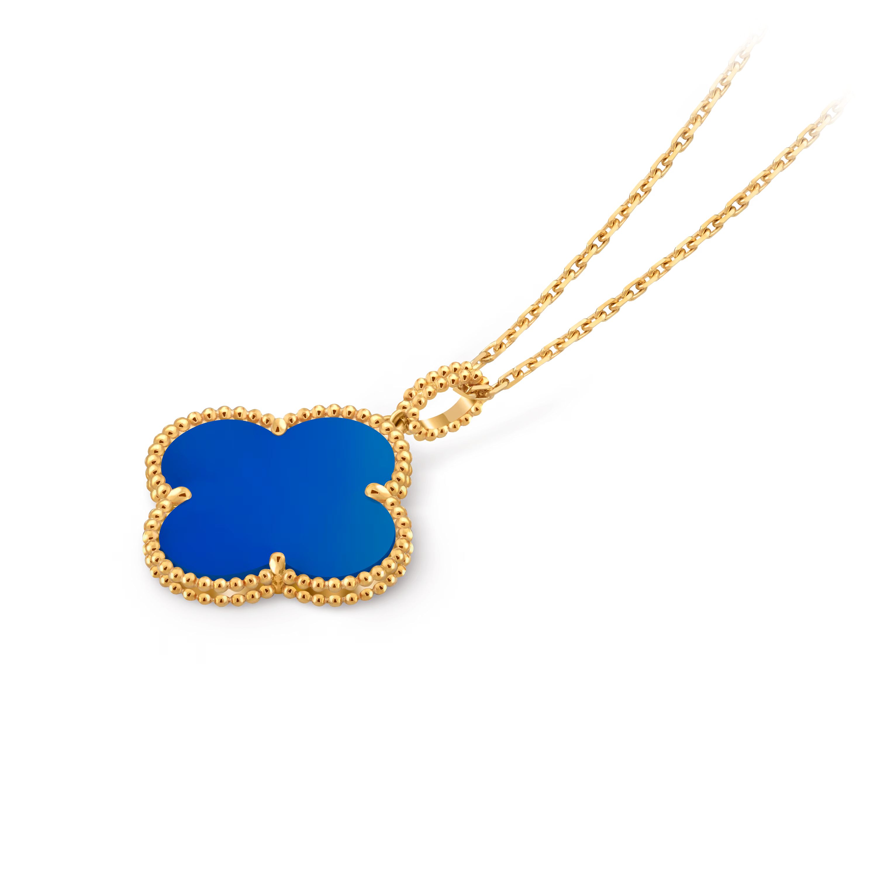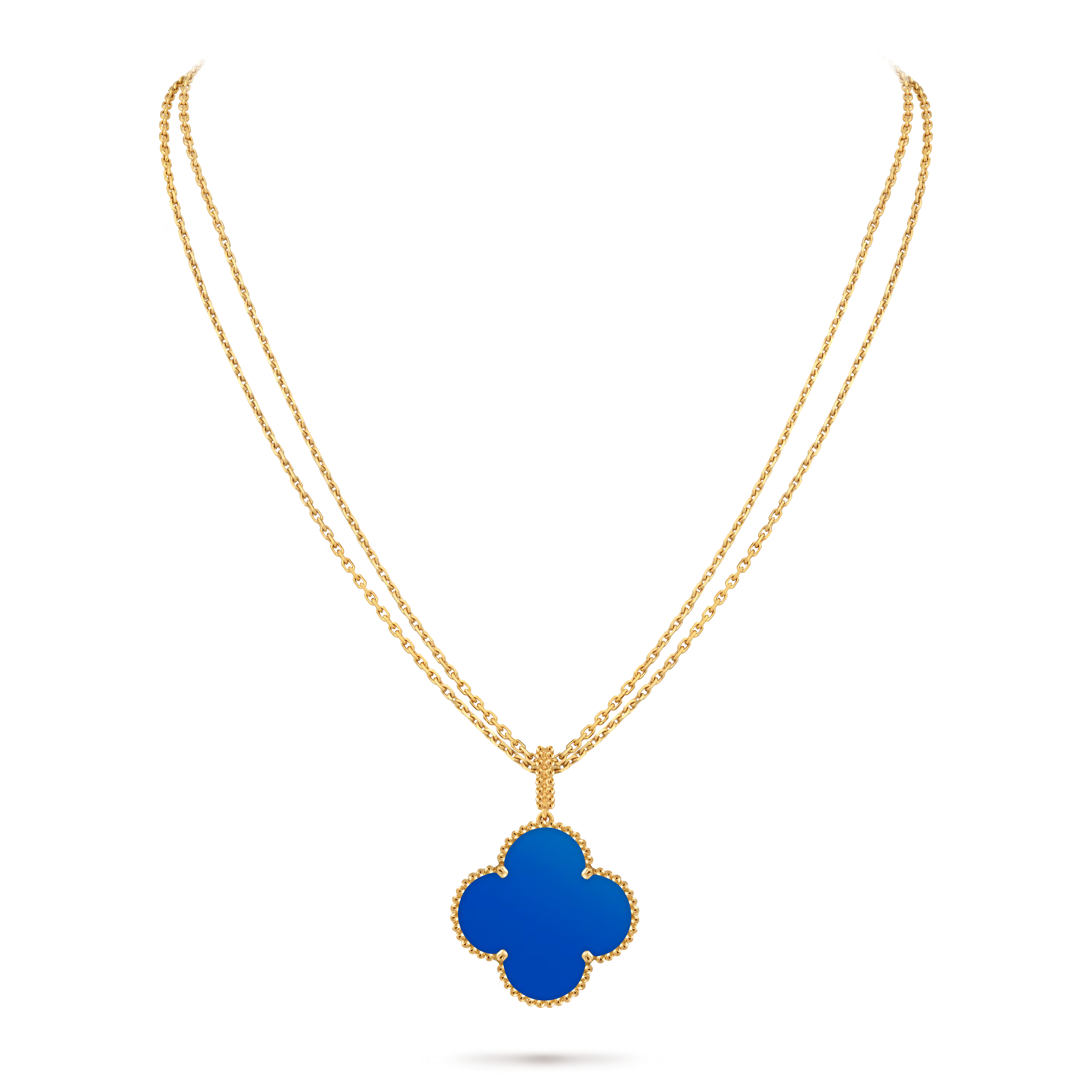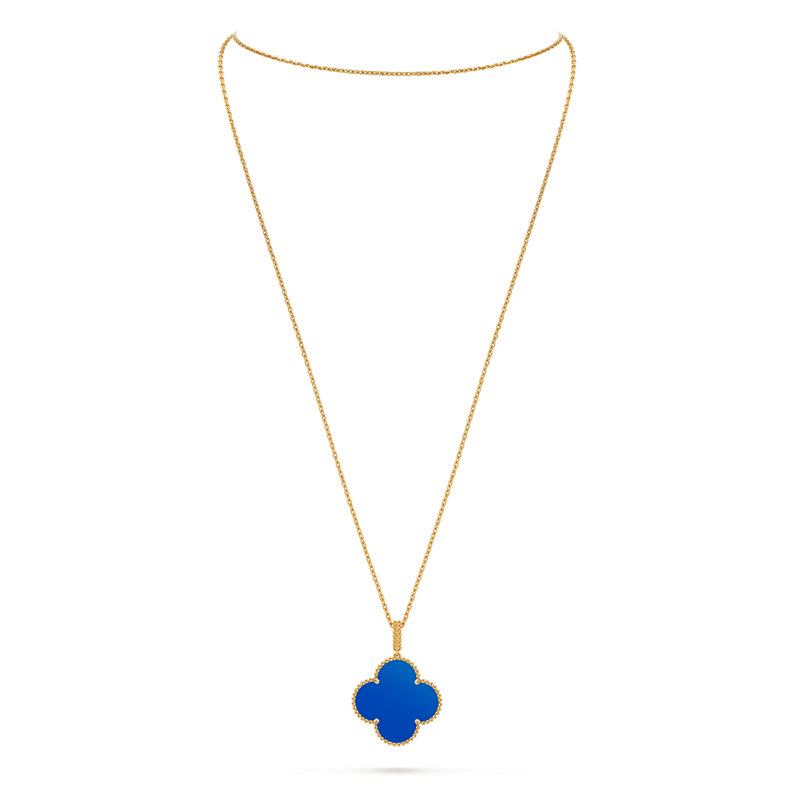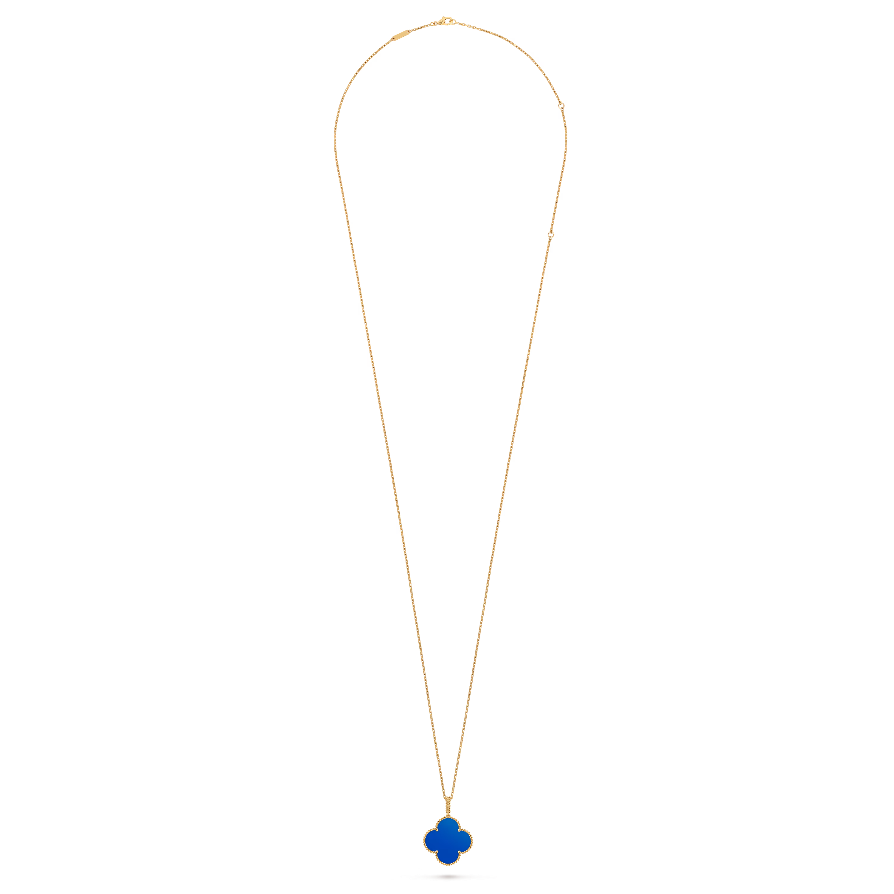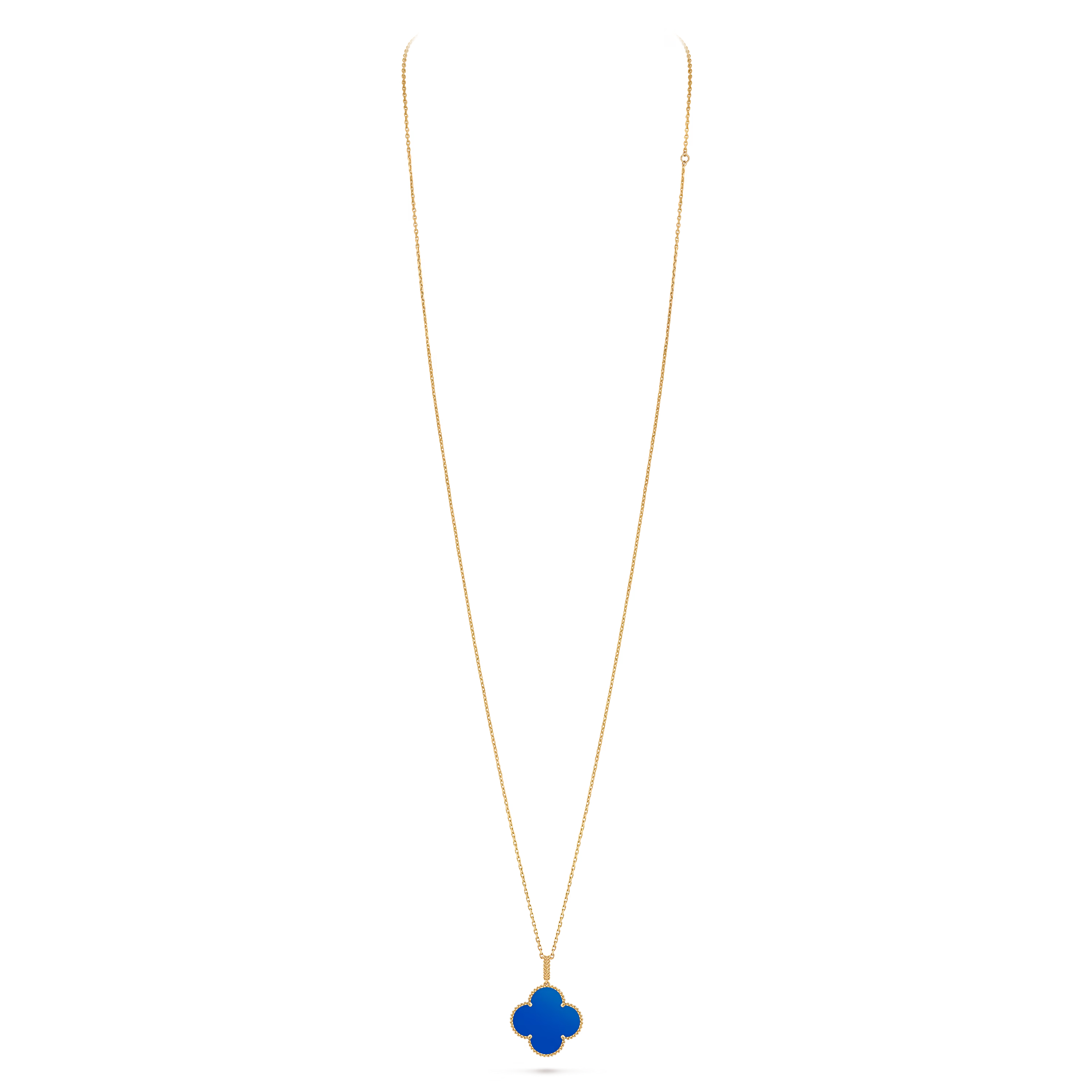 The long, fluid chain enhances its versatility, allowing it to be worn alone as a statement piece or layered with other Alhambra creations for a more expressive look. Artful and serene, this necklace embodies the Maison’s enduring belief in the beauty of luck and the artistry of fine craftsmanship.