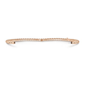 At the heart of the creation is a continuous row of perfectly rounded gold beads. Each bead is sculpted with remarkable precision and polished to a mirror-like finish, capturing light with every gesture and creating a soft, radiant glow across the wrist.