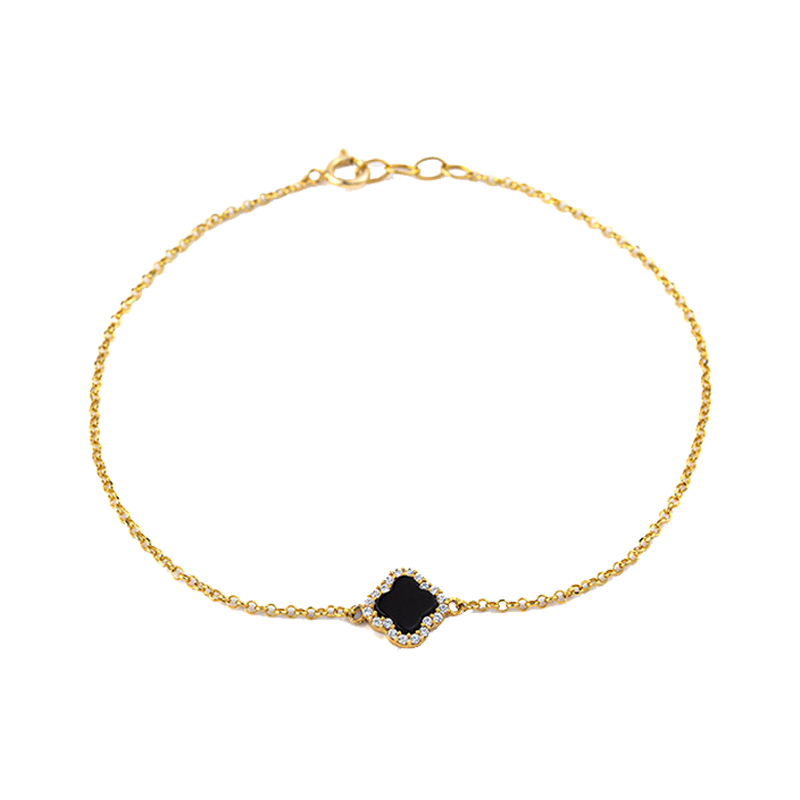Featuring finely crafted clover motifs displayed along a slender chain, the bracelet creates a soft visual rhythm. Each motif appears like a small charm of luck, adding gentle movement with every gesture.