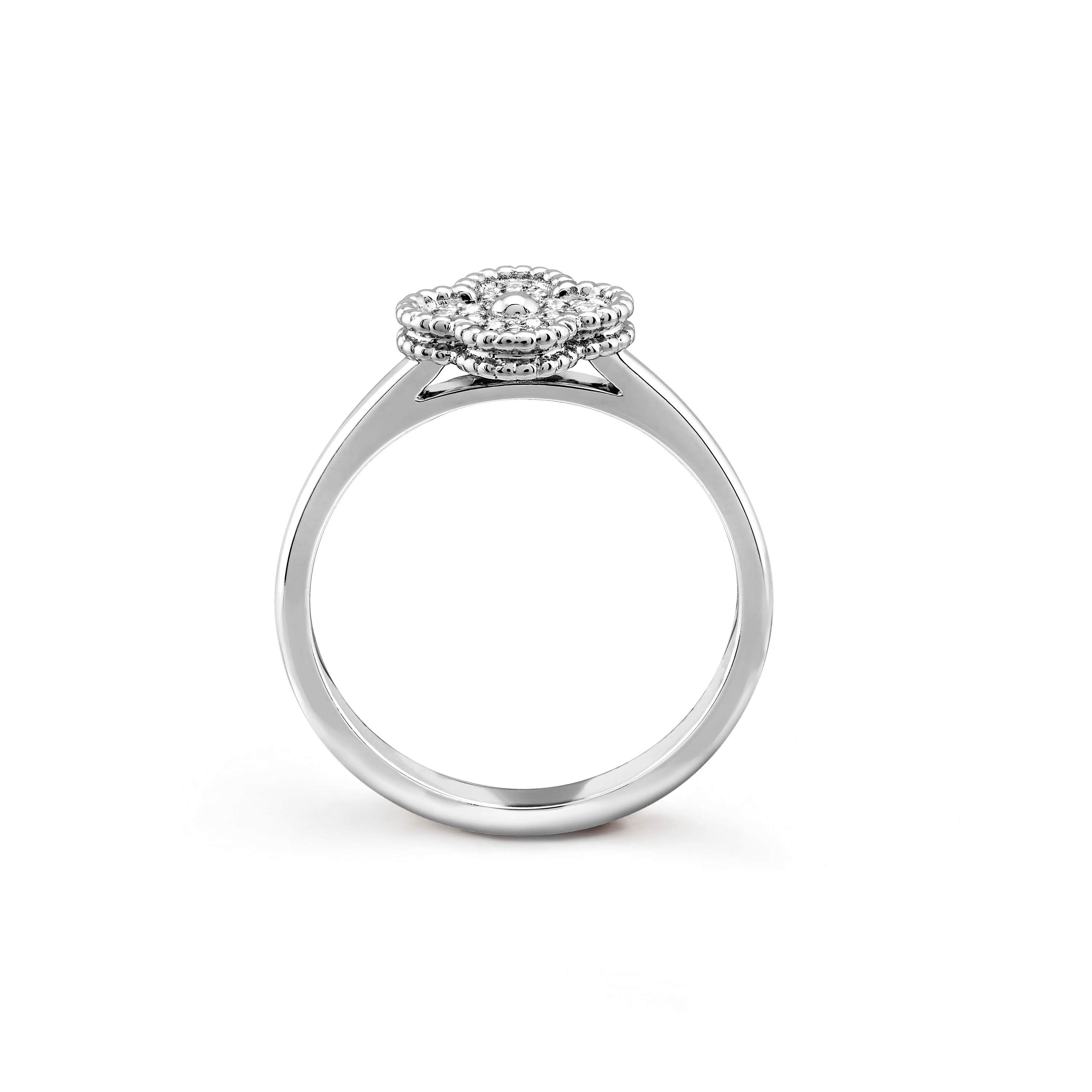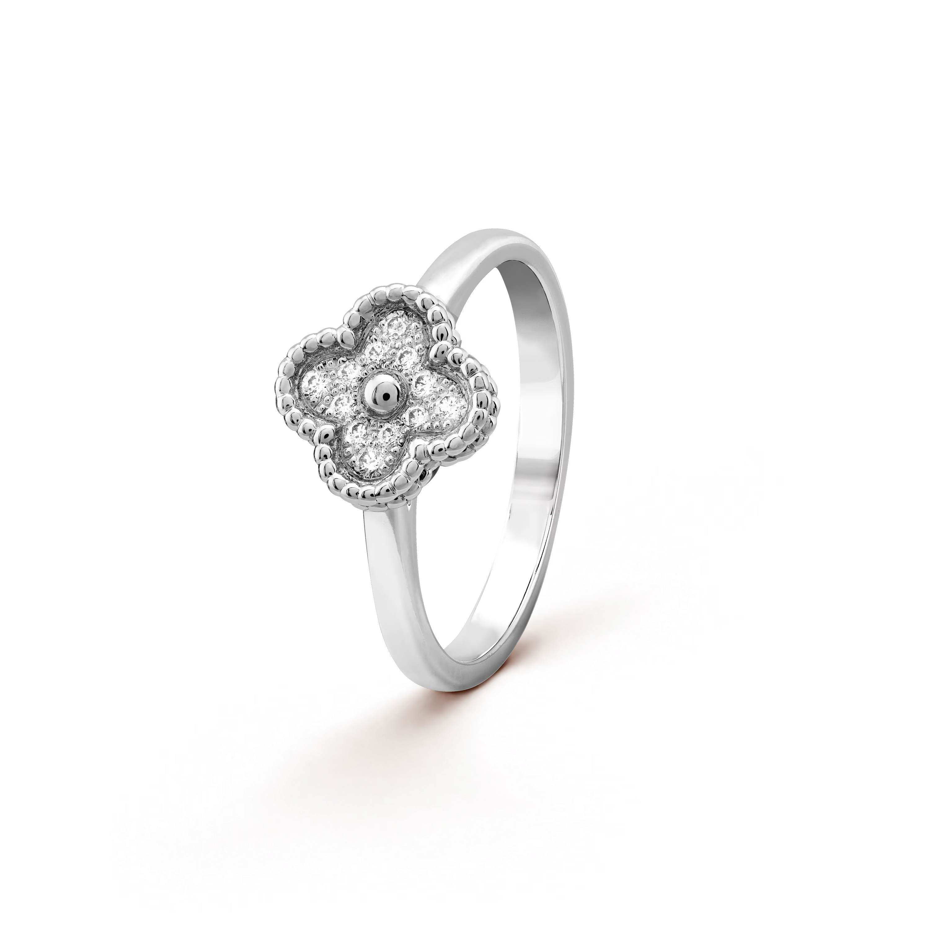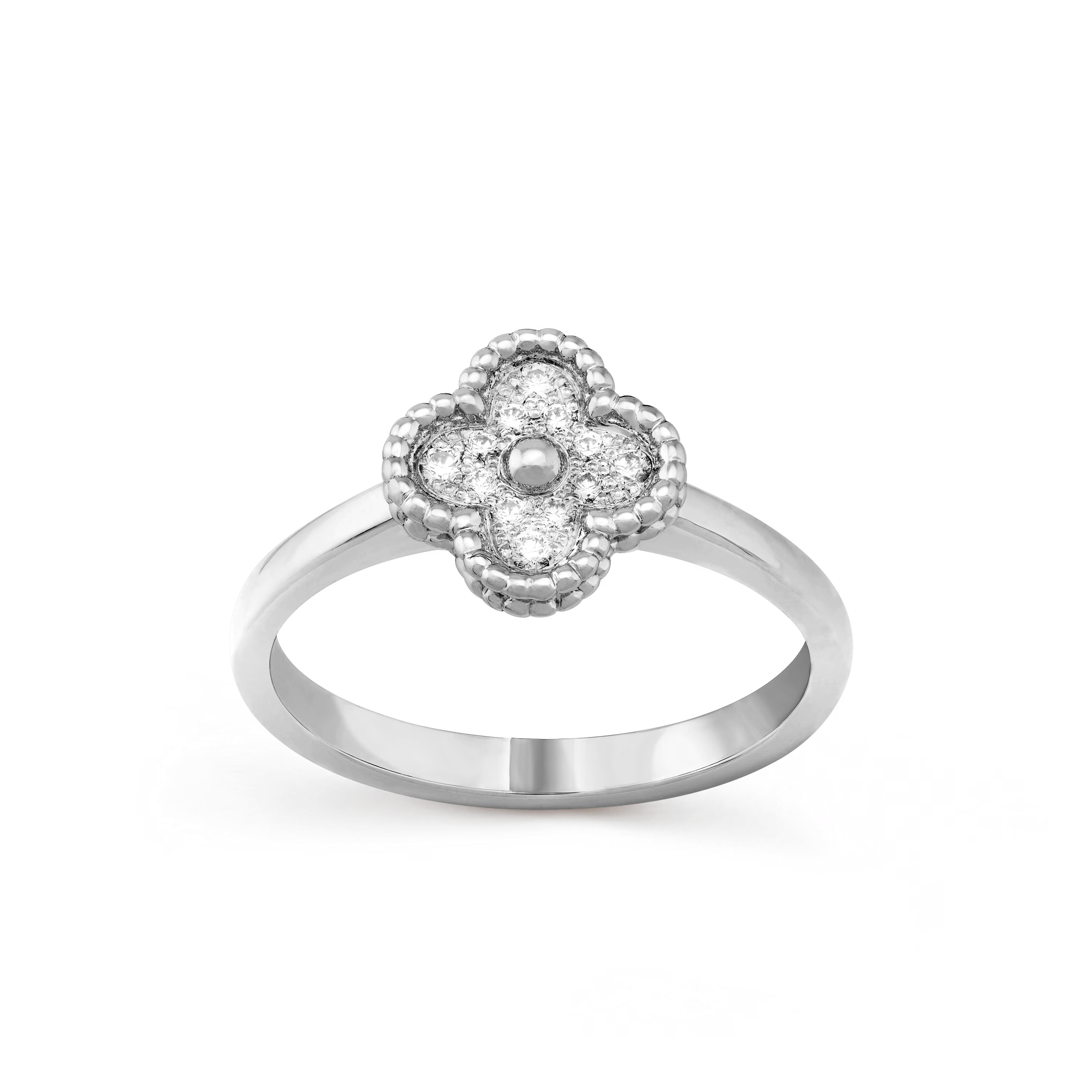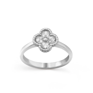 Sweet Alhambra Ring – 18K White Gold & Diamonds**