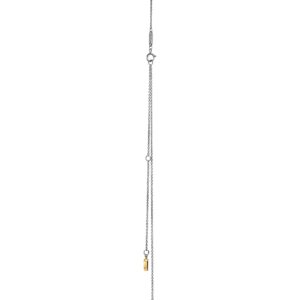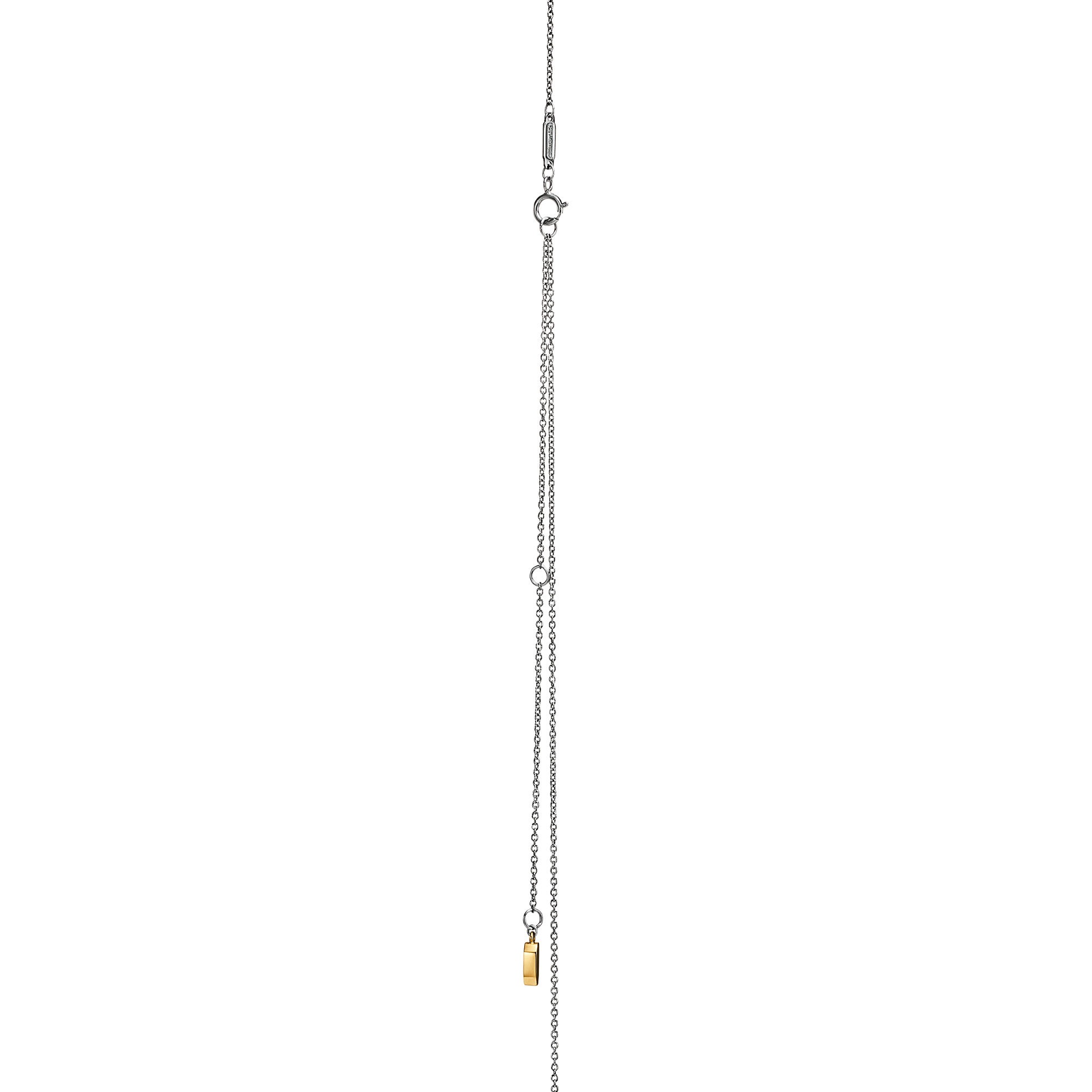 Suspended from a delicate chain, the pendant sits elegantly along the neckline, making it a perfect everyday luxury piece while still refined enough for special occasions. Its mixed-metal design pairs effortlessly with any jewelry collection, offering versatility and modern elegance in one beautifully crafted piece.