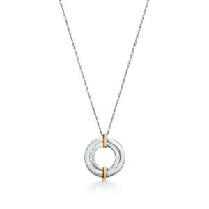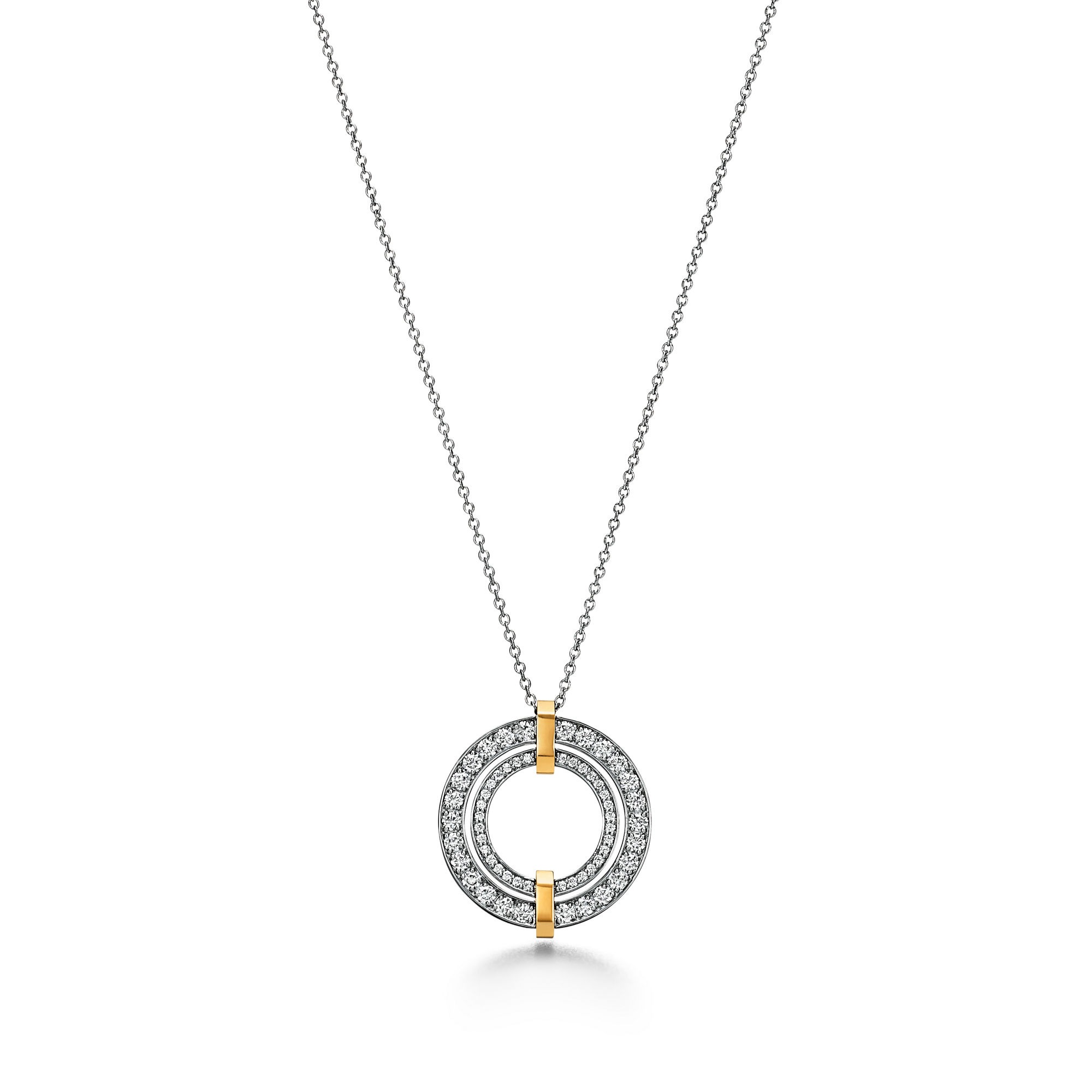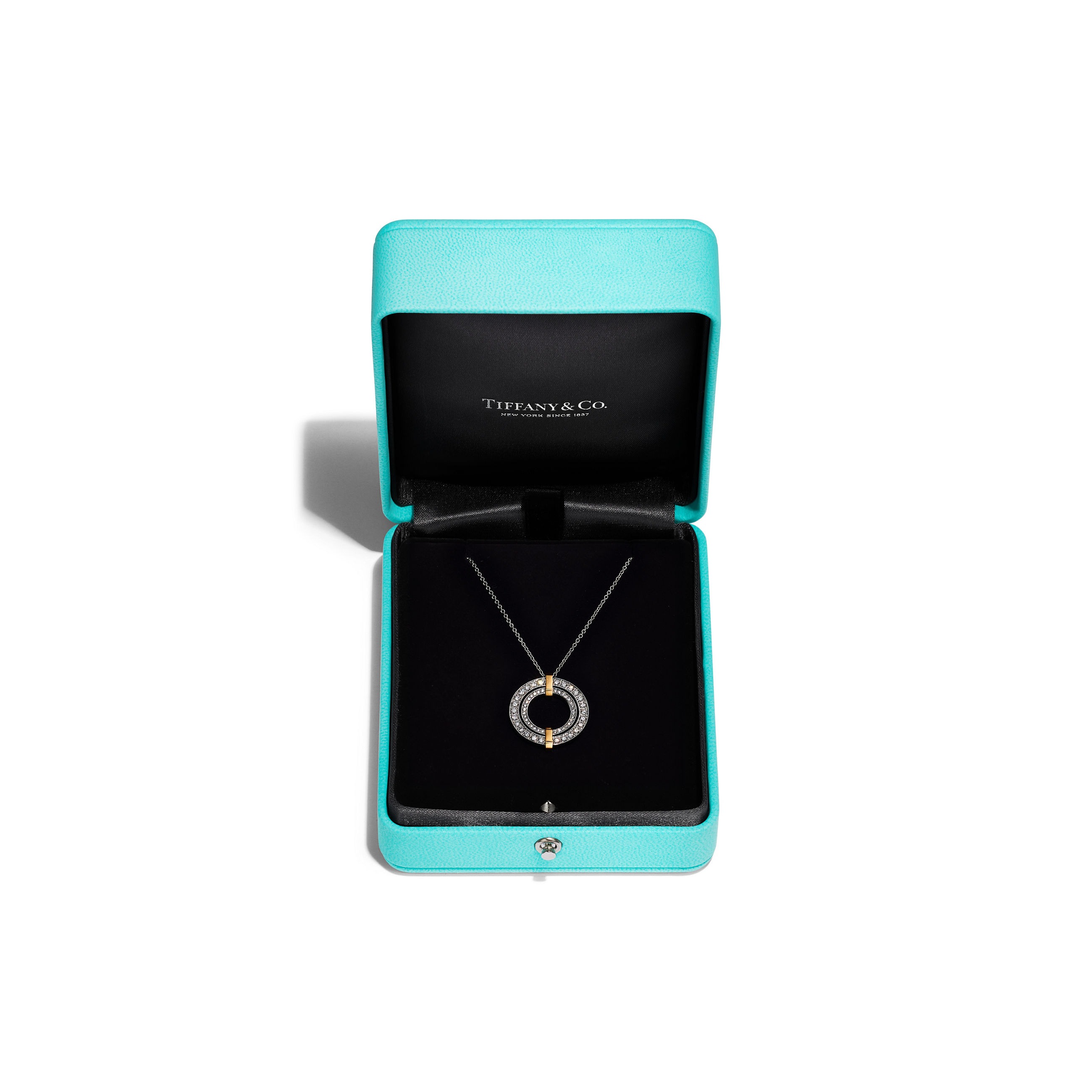 Tiffany Edge Circle Pendant in Platinum and Yellow Gold with Diamonds – Small