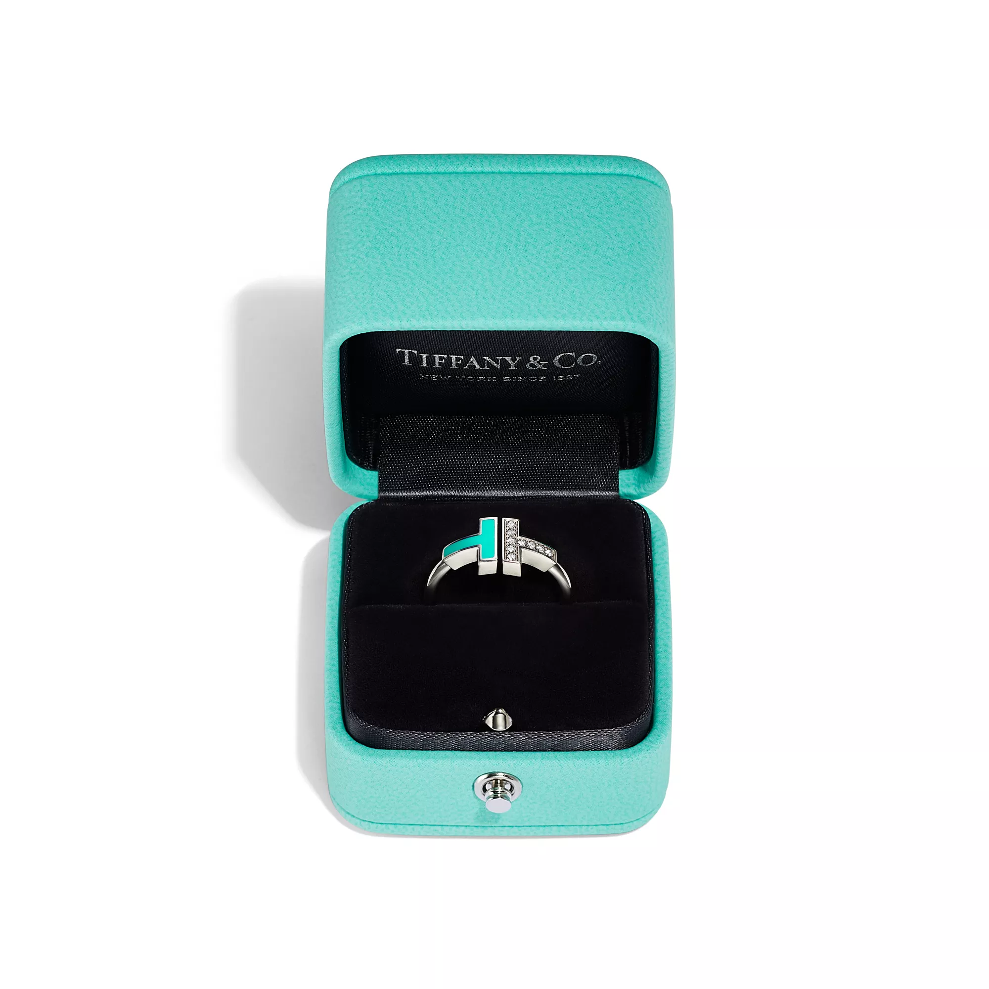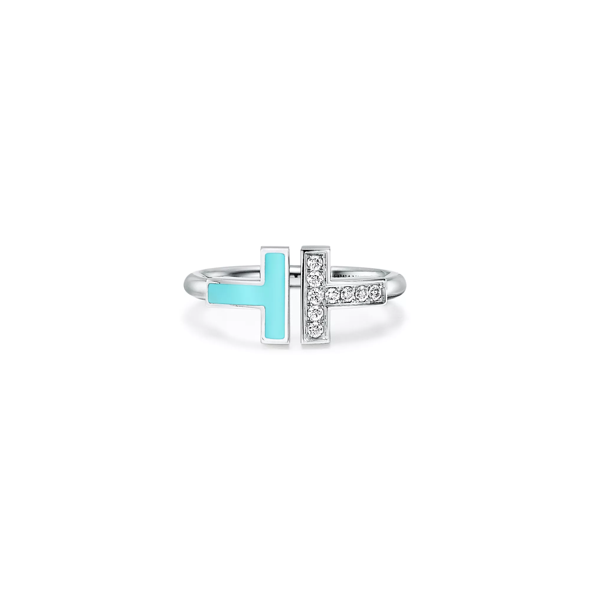 Tiffany T Diamond and Turquoise Wire Ring in White Gold