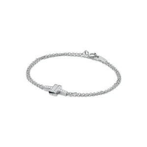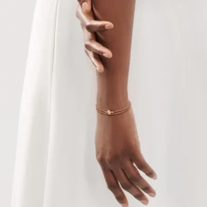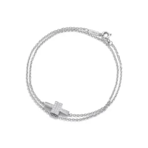 This bracelet blends clean architectural lines with eye-catching diamond brilliance. The double-chain silhouette gives it a graceful, lightweight feel while adding a modern twist to a classic Tiffany design. Perfect for daily wear or special occasions.