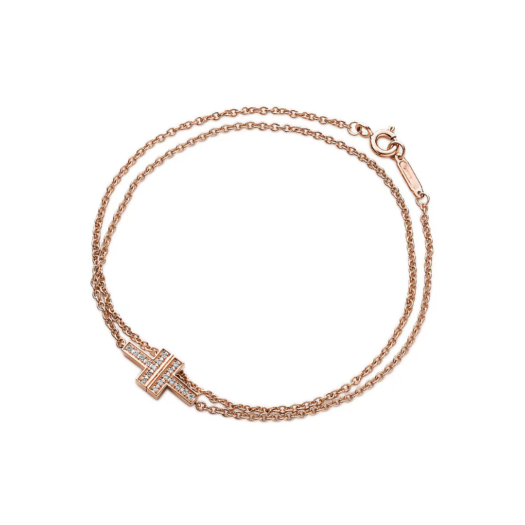 A refined expression of the iconic Tiffany T motif, this Diamond Double Chain Bracelet brings modern elegance to any look. The sleek T-shaped element is set with sparkling diamonds and paired with a delicate double-chain design that adds subtle dimension and sophistication.