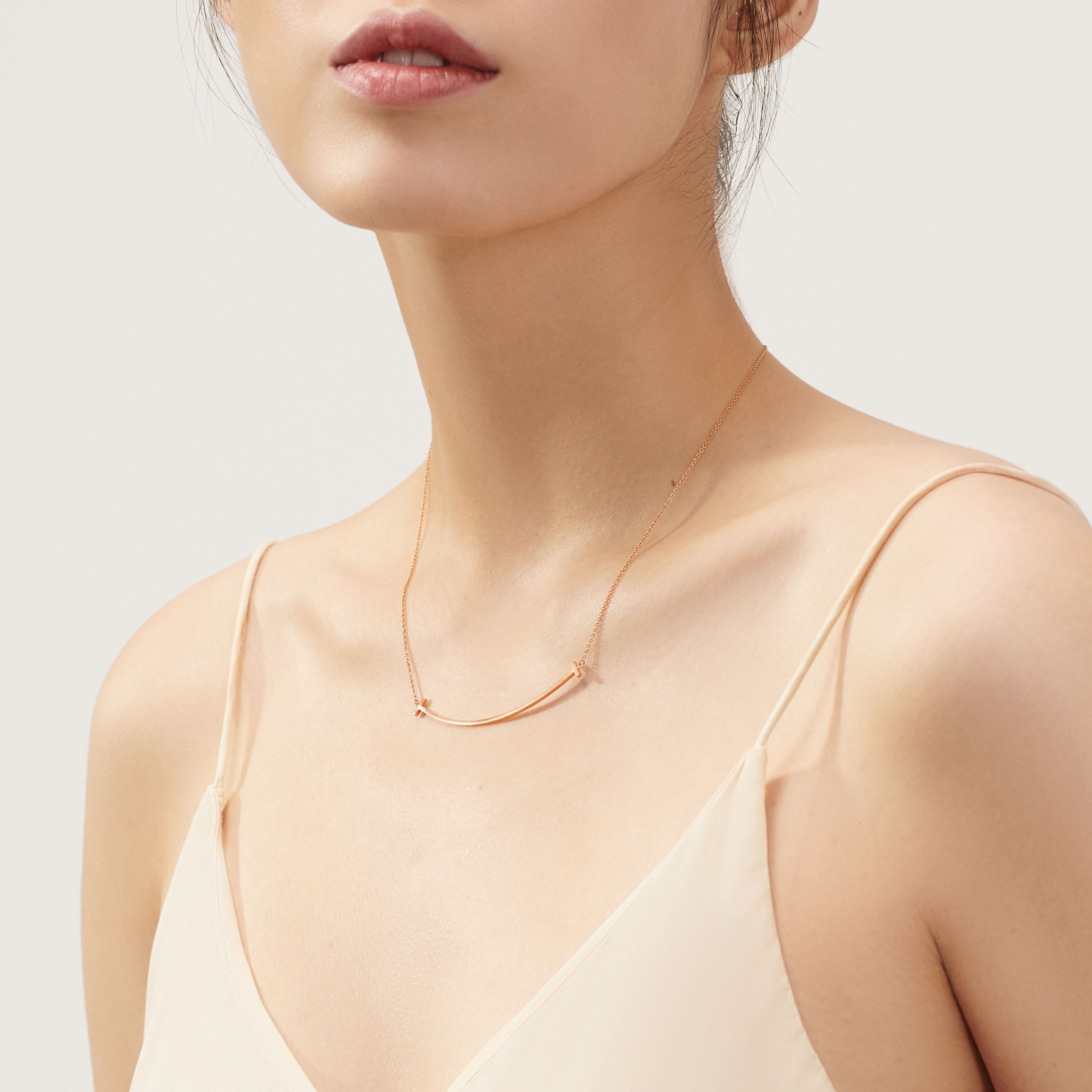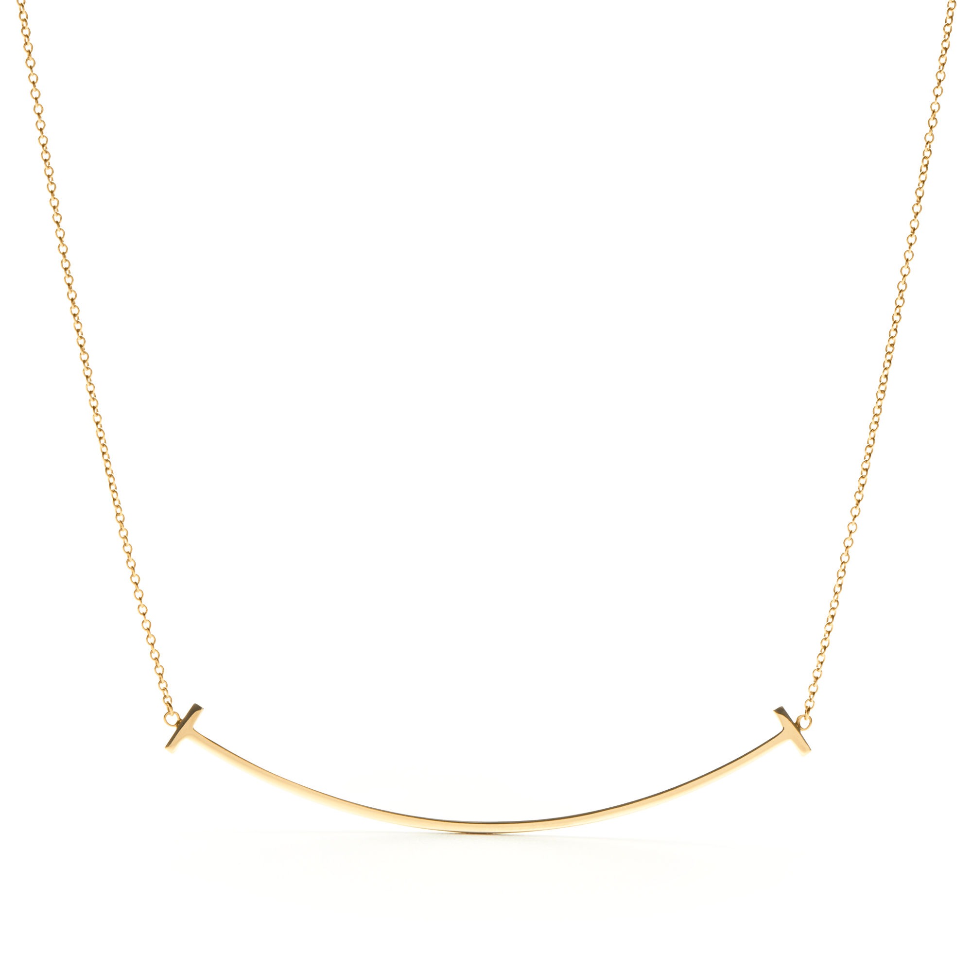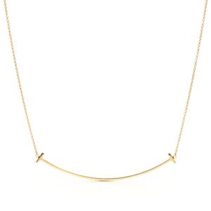 Modern, sleek, and full of effortless confidence—the Tiffany T Smile Pendant in Large makes a bold yet refined statement. Designed with the signature curved bar silhouette from the iconic Tiffany T collection, this larger-size pendant offers a graceful sweep across the neckline, creating a look that is both sculptural and elegantly minimal.