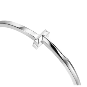 Featuring the iconic “T” motif sculpted in clean architectural lines, this bangle embodies the bold yet refined spirit of Tiffany design.