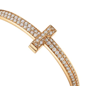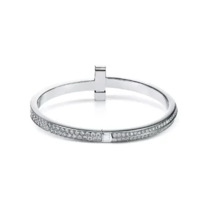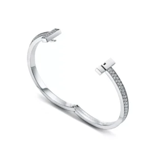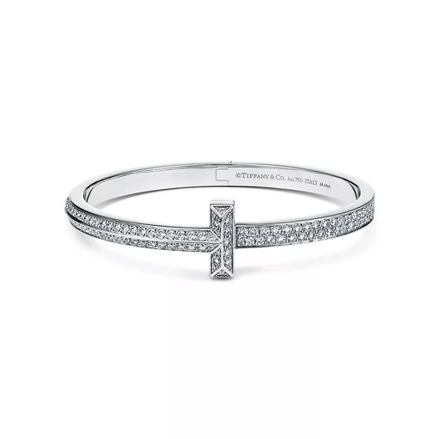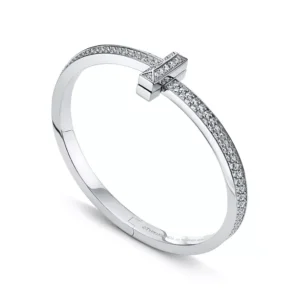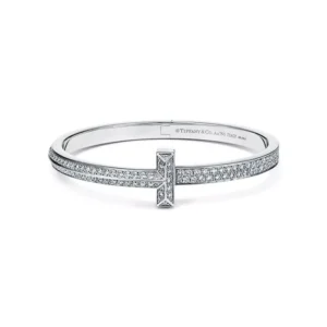 The wide profile creates a strong visual statement, while the continuous diamond setting adds brilliance from every angle. The hinge and clasp are seamlessly integrated, reflecting Tiffany’s meticulous engineering and refined craftsmanship.