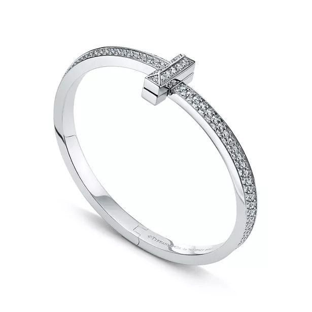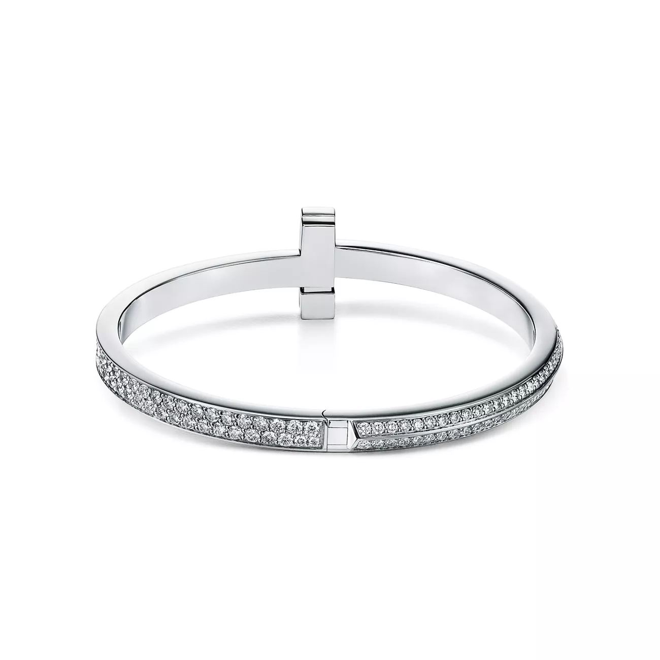 The Tiffany T T1 Wide Diamond Hinged Bangle is a bold reimagining of the iconic Tiffany T motif. Crafted with clean architectural lines and a strong geometric presence, it embodies modern luxury and confident self-expression. Fully set with brilliant diamonds, the bangle delivers a striking balance of elegance and power.