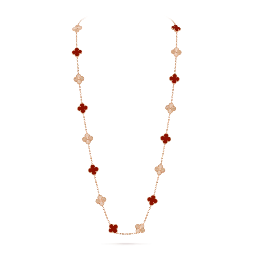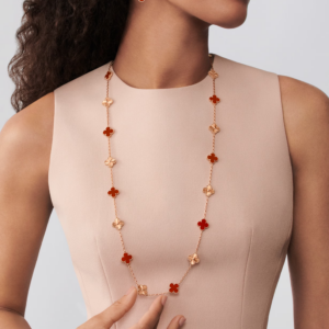 The Vintage Alhambra long necklace with 20 motifs embodies the essence of refined luxury: iconic design, exquisite materials, and excellent craftsmanship. This piece offers timeless beauty and symbolic meaning, making it an exceptional addition to any jewelry collection.