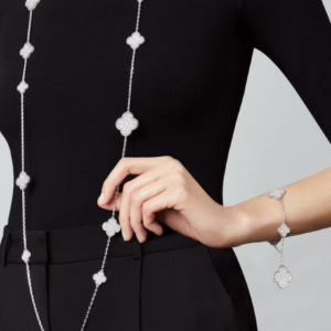 Timeless, graceful, and deeply symbolic, the Vintage Alhambra Pendant in 18K white gold captures the pure elegance of Van Cleef & Arpels’ iconic four-leaf clover. A harmonious blend of softness and radiance, this pendant reflects the Maison’s belief in luck, beauty, and enduring craftsmanship.
