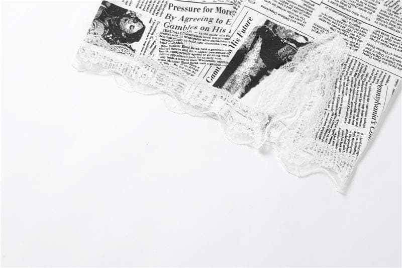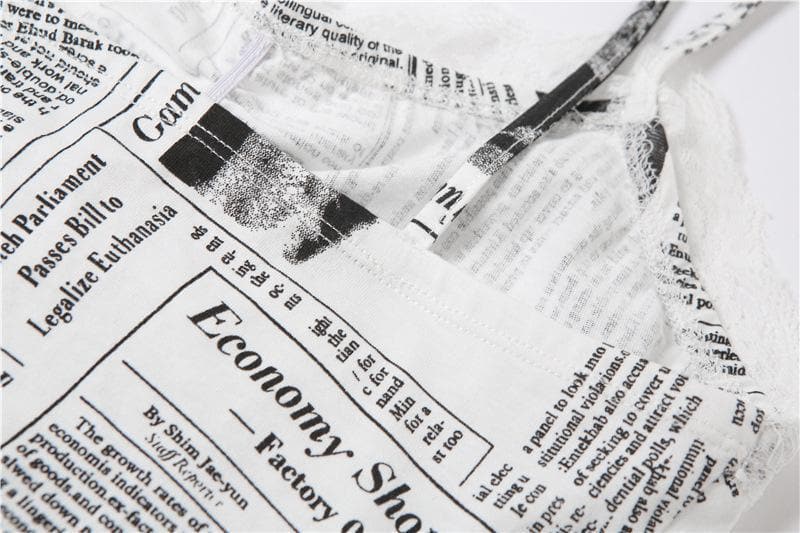 Be the first to review “Hem lace newspaper print slit cami dress”
