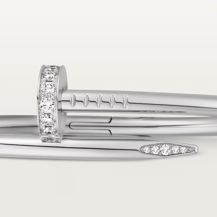 The Juste un Clou bracelet transforms an ordinary nail into a powerful symbol of individuality and freedom. The classic model embodies Cartier’s spirit of creative audacity, elevated with diamonds for refined elegance and timeless appeal.• Diamonds