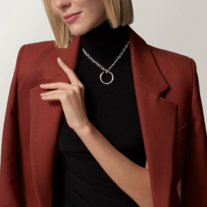 Striking, sculptural, and boldly contemporary—the extra-large Juste un Clou long necklace transforms a simple nail into a statement of pure attitude. Crafted with Cartier’s unmistakable precision, its elongated silhouette wraps the iconic design into a versatile multiwear piece that adapts effortlessly to every mood.