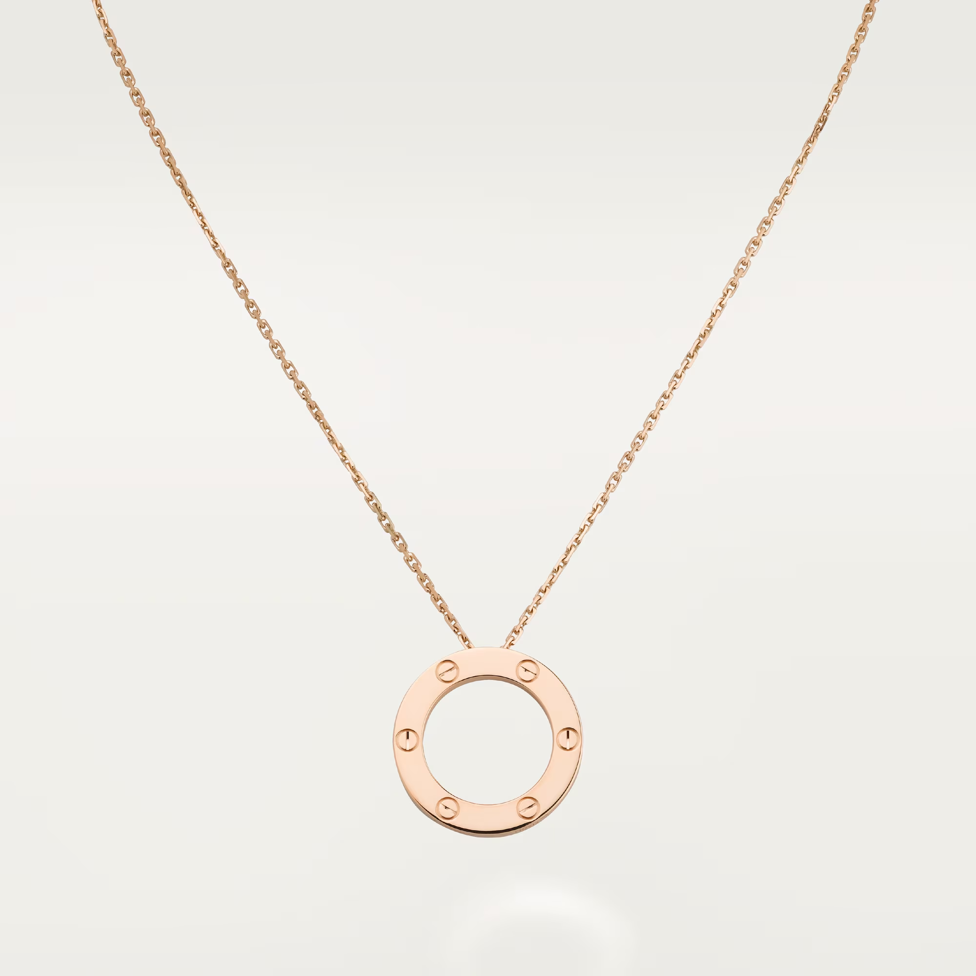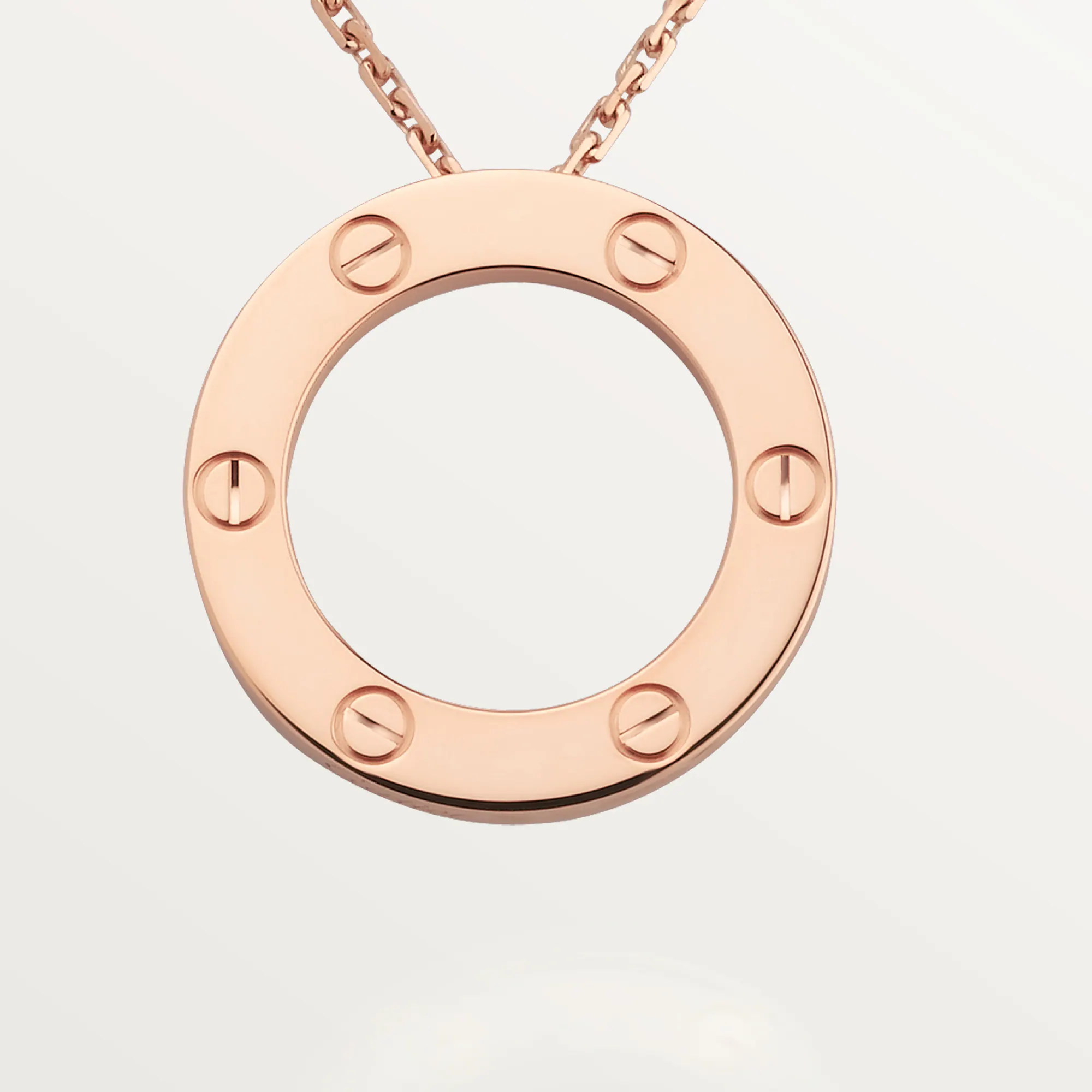 Timeless, iconic, and instantly recognizable—the Cartier LOVE pendant captures the purity of modern devotion. Its sleek circular form, engraved with the emblematic screw motifs, reflects a design born from passion and sealed with intention.