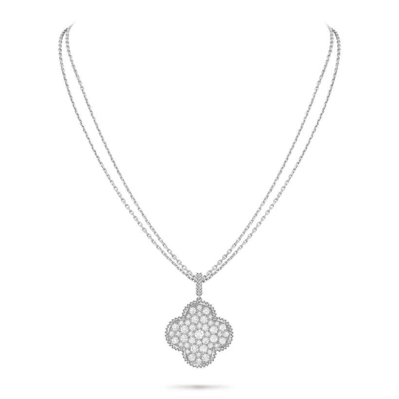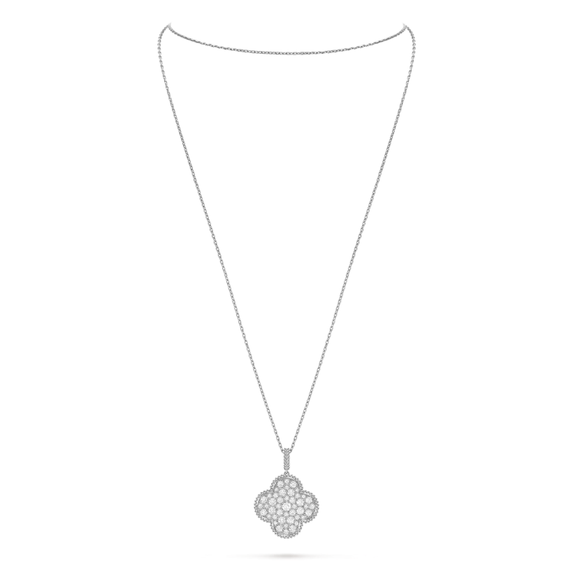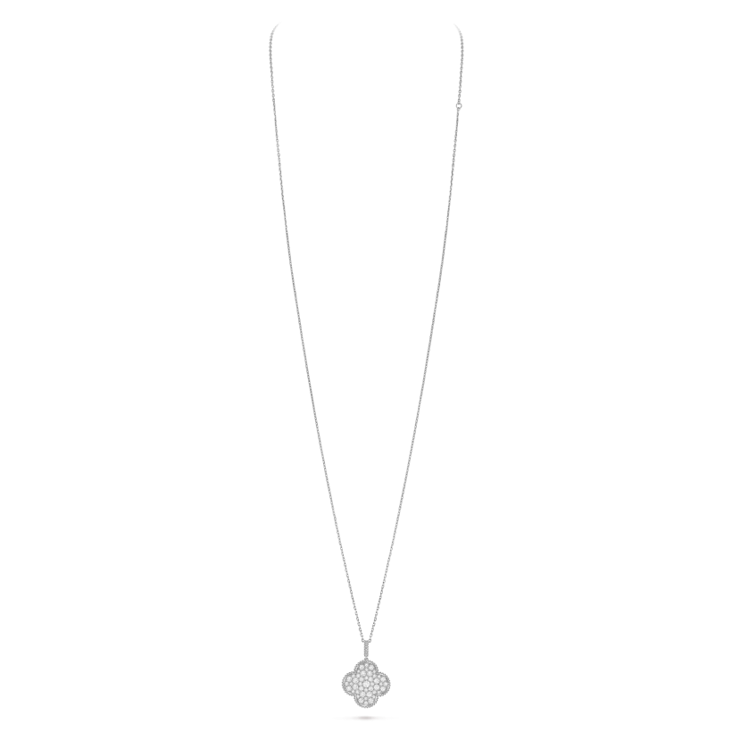 The Magic Alhambra long necklace with 1 motif is a sophisticated expression of symbolic design and timeless artistry. Its singular, oversized motif brings effortless elegance to any jewelry collection.