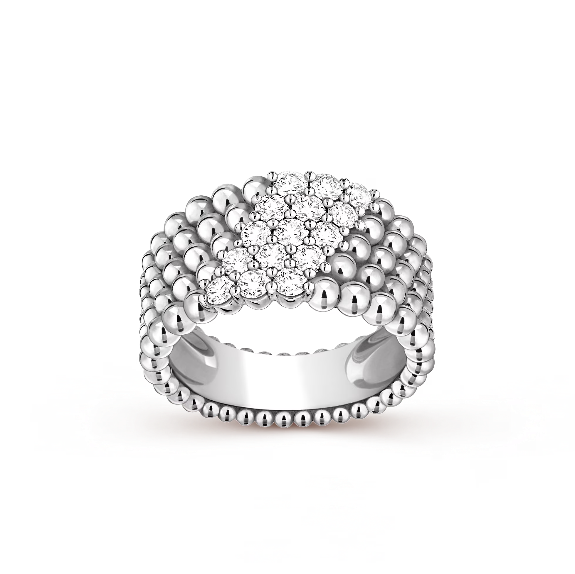 Both architectural and feminine, the Perlée Diamonds Ring offers a luxurious presence on the hand—substantial yet elegantly balanced. Whether worn as a statement piece or paired with other Perlée creations, it brings a luminous, joyful energy to any look.