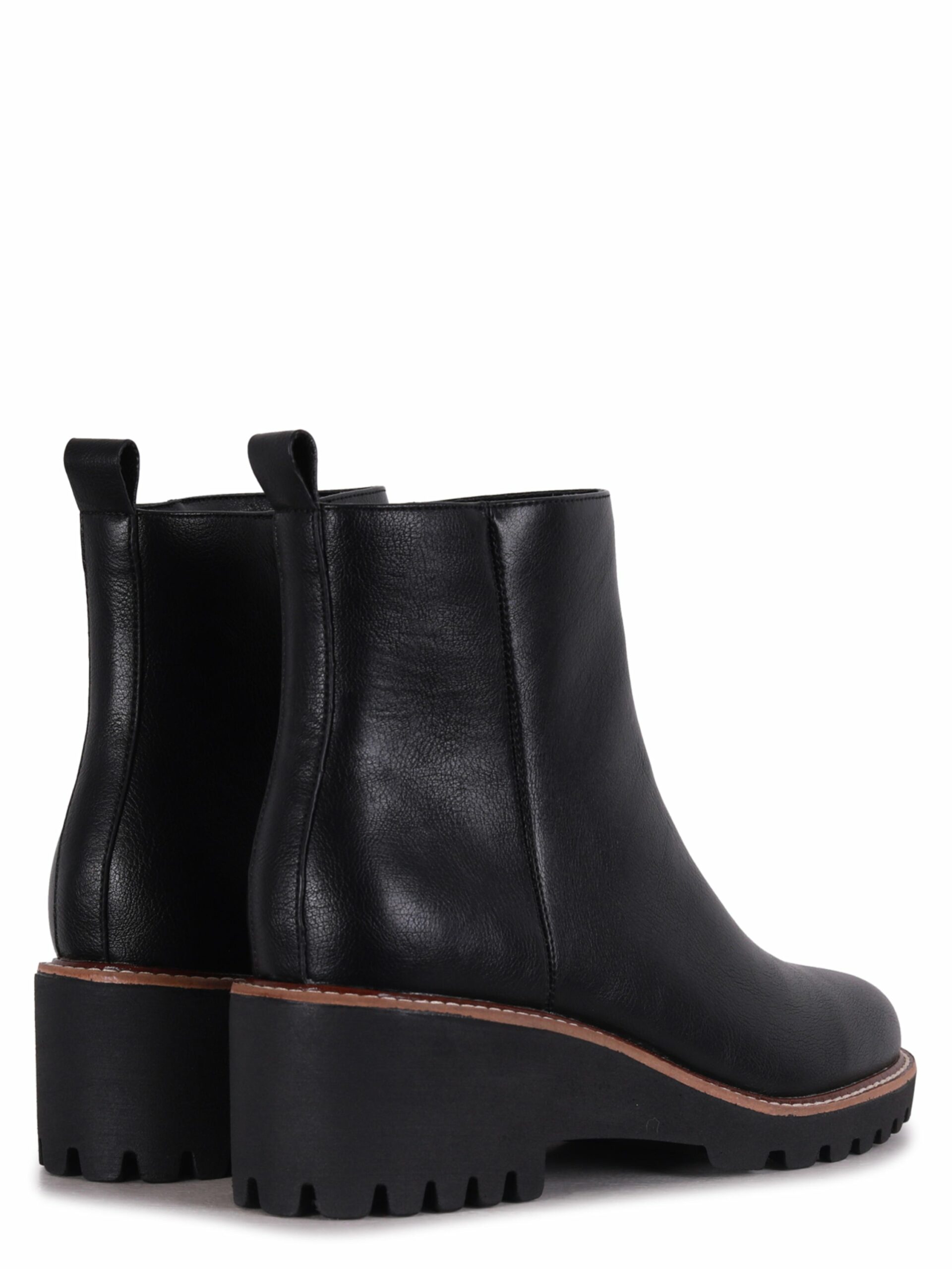 Wrapped in a luxe faux leather finish, these Chelsea boots feature a full length side-zip and boast a 6cm wedge sole for a style that’s chic and sophisticated.