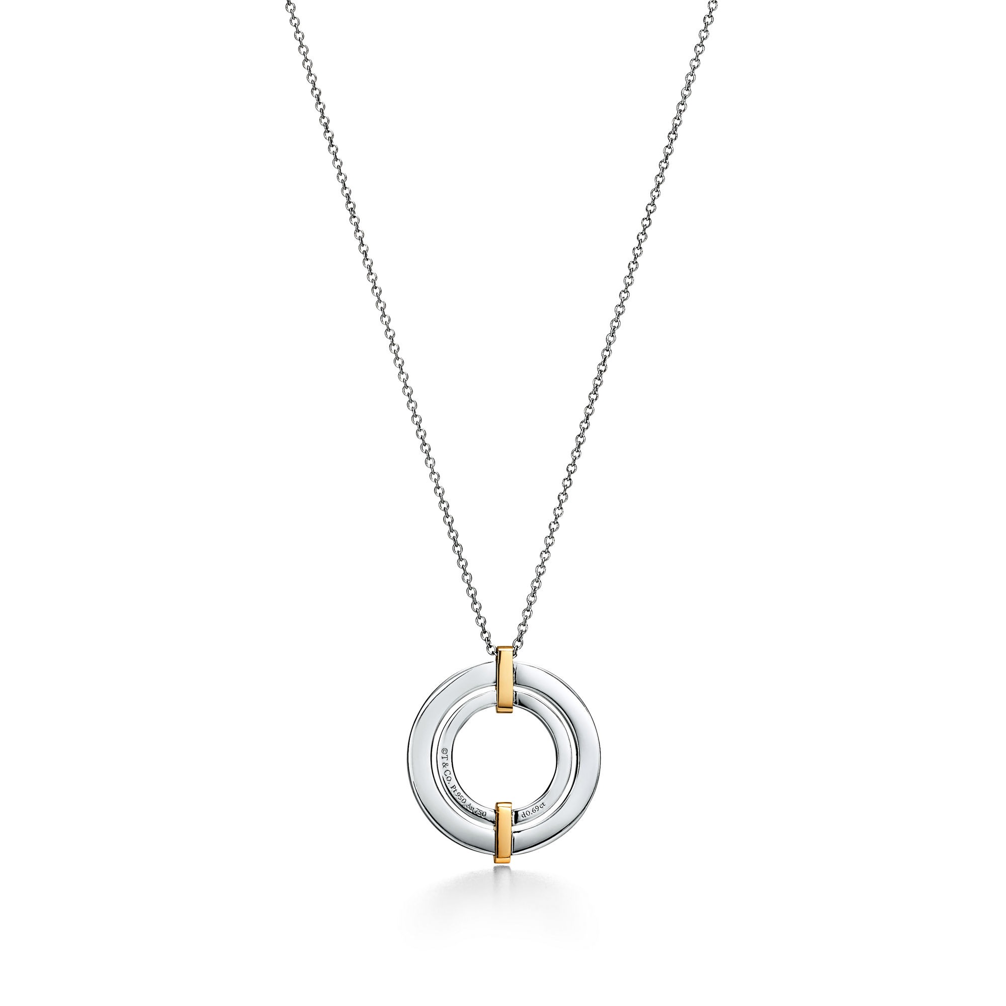 Tiffany Edge Circle Pendant in Platinum and Yellow Gold with Diamonds – Small