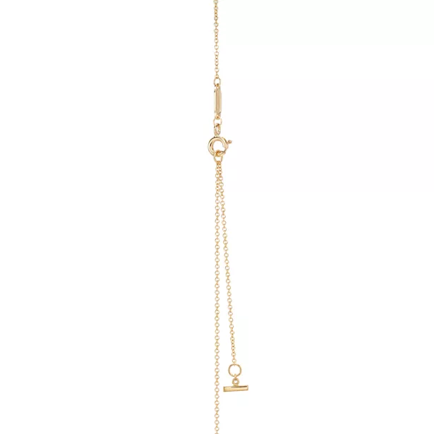 Suspended from a slender chain, it rests delicately along the collarbone, making it an ideal everyday piece. Wear it alone for a clean, polished look, or layer it with other necklaces to build a modern, elevated stack.