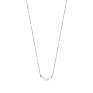 Delicate, luminous, and effortlessly modern, the Tiffany T Smile Pendant with Diamonds (Mini) captures the iconic curved silhouette of the Tiffany T collection in its most refined and understated form. This ultra-sleek “mini” version offers a subtle sparkle that brings elegance to any moment without ever feeling overpowering.