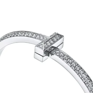 The T1 collection represents strength, individuality, and the enduring connection to the Tiffany legacy. The wide silhouette emphasizes the iconic “T” motif through sleek contours and precise symmetry, offering a sculptural look that symbolizes empowerment and personal style.