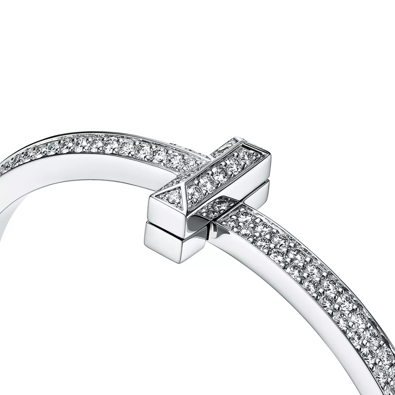 The Tiffany T T1 Wide Diamond Hinged Bangle is a bold reimagining of the iconic Tiffany T motif. Crafted with clean architectural lines and a strong geometric presence, it embodies modern luxury and confident self-expression. Fully set with brilliant diamonds, the bangle delivers a striking balance of elegance and power.