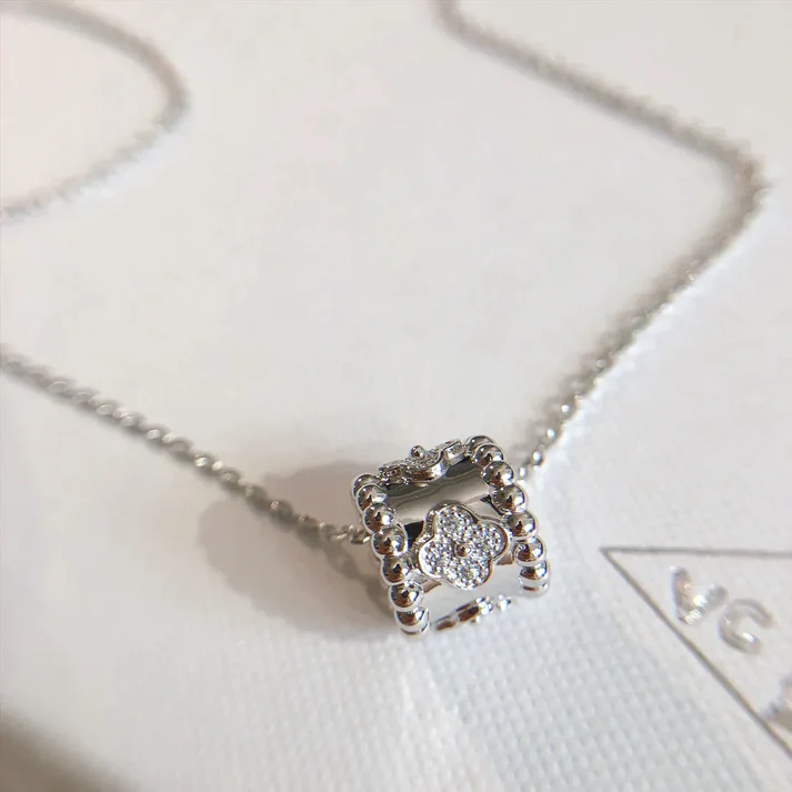 Van Cleef & Arpels Diamond Perlée Clover Pendant Necklace