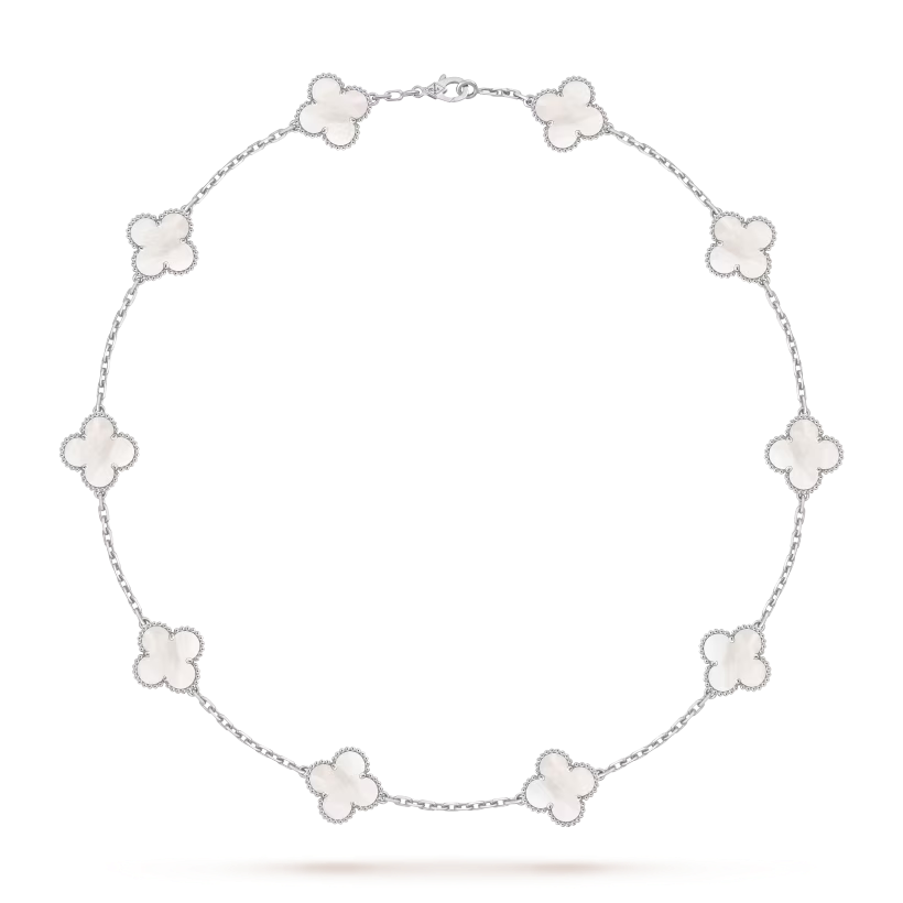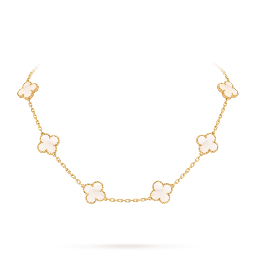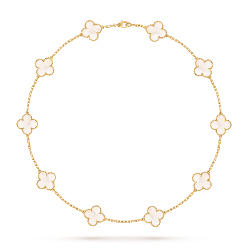 The Vintage Alhambra necklace with 10 motifs is a timeless expression of elegance and artistry. Its symbolic design and refined craftsmanship make it a meaningful and sophisticated addition to any jewelry collection.