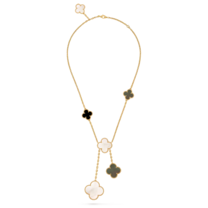 Suspended from a matching white gold chain, the pendant sits elegantly along the neckline, offering a touch of quiet luxury. Whether worn alone or paired with other Alhambra creations, it remains a graceful symbol of harmony and timeless beauty.